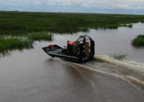 氣動船(Airboat)使用用途非常廣泛,可以在沼澤、濕地、冰面、草地、雪地和淺水水域等環(huán)境暢通無阻的航行,在歐美、加拿