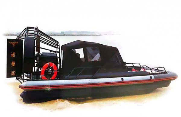 船體采用pvc為主體,外覆防彈材料。美國進口300HP發(fā)動機、碳纖維螺旋槳、減速箱,船底用高性能耐磨復合材料。